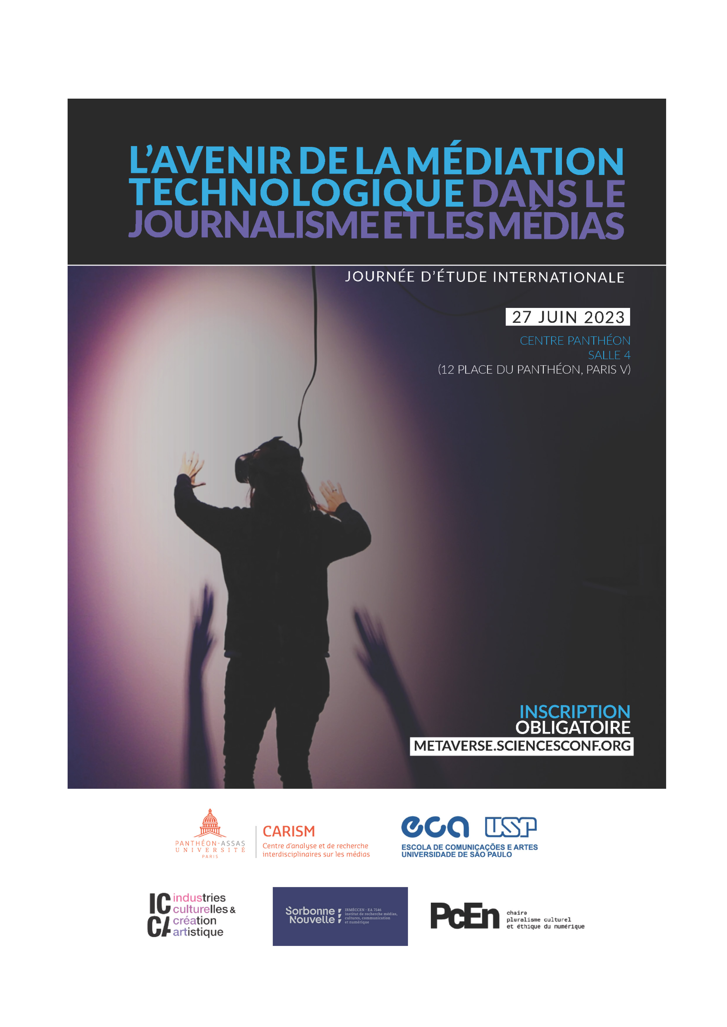 Le Centre d'analyse et de recherche interdisciplinaires sur les médias (CARISM) organise une journée d'étude sur le thème "L’avenir de la médiation technologique dans le journalisme et les médias" le mardi 27 juin 2023, au Centre Panthéon.