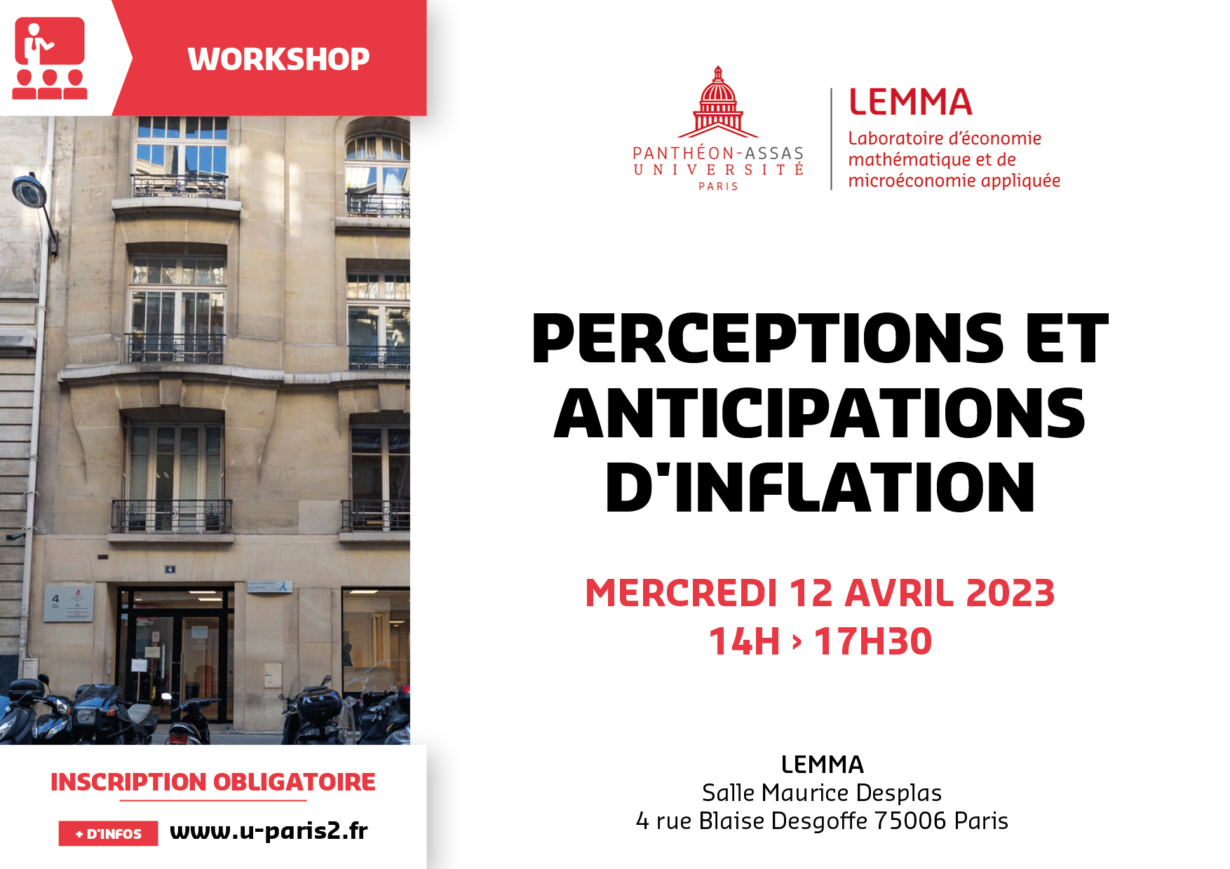 Le LEMMA (Laboratoire d'économie mathématique et de microéconomie appliquée) organise un workshop sur le thème "Perceptions et anticipations d’inflation" le mercredi 12 avril à 14h.